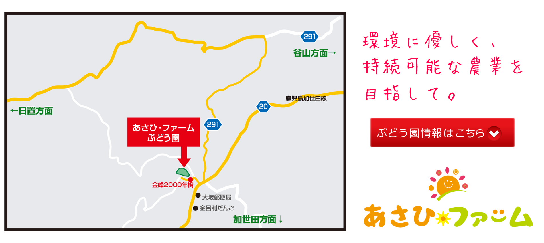 ぶどうや葉物野菜、さつまいも、かぼちゃなどの作物を紹介します。