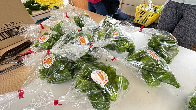 いつも新鮮な野菜を食べてほしいから、収穫した野菜はすぐに袋詰めして鹿児島市内のお店に出荷します。