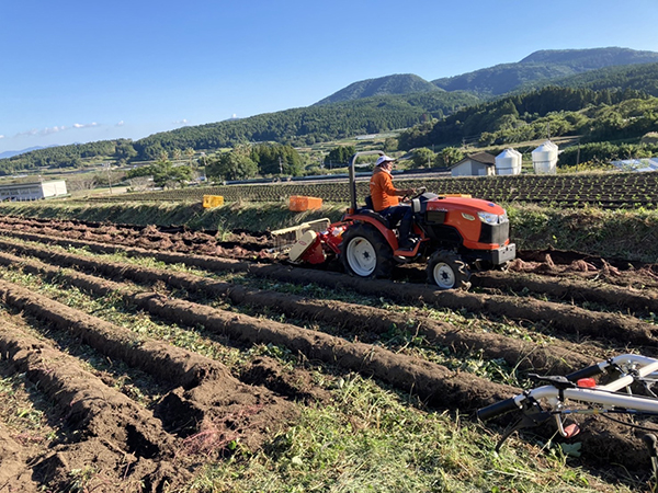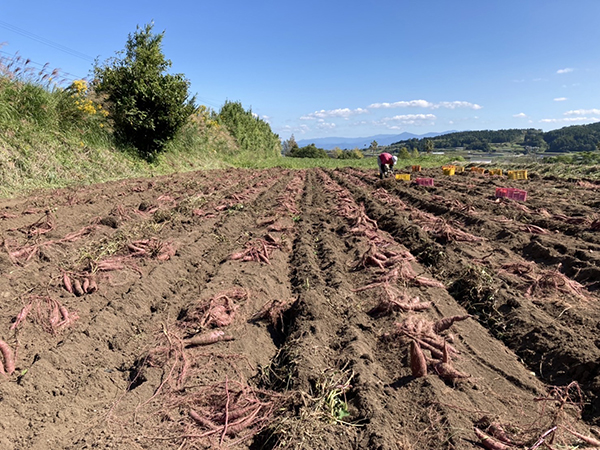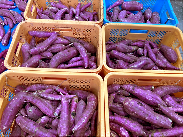 指宿にあるさつまいも畑では「紅はるか・紅さつま・黄金千貫」を栽培しています。