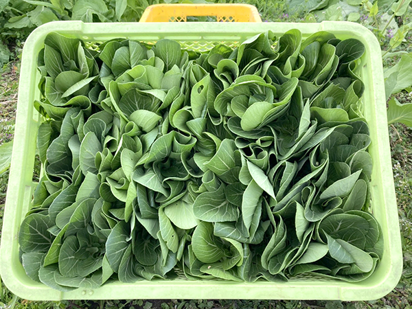 ピーマン・とうもろこし・高菜・大根・玉ねぎ・小松菜・チンゲン菜・ほうれん草・かぶ・ラディッシュ・ブロッコリーなど、季節に合わせた野菜を育てています。